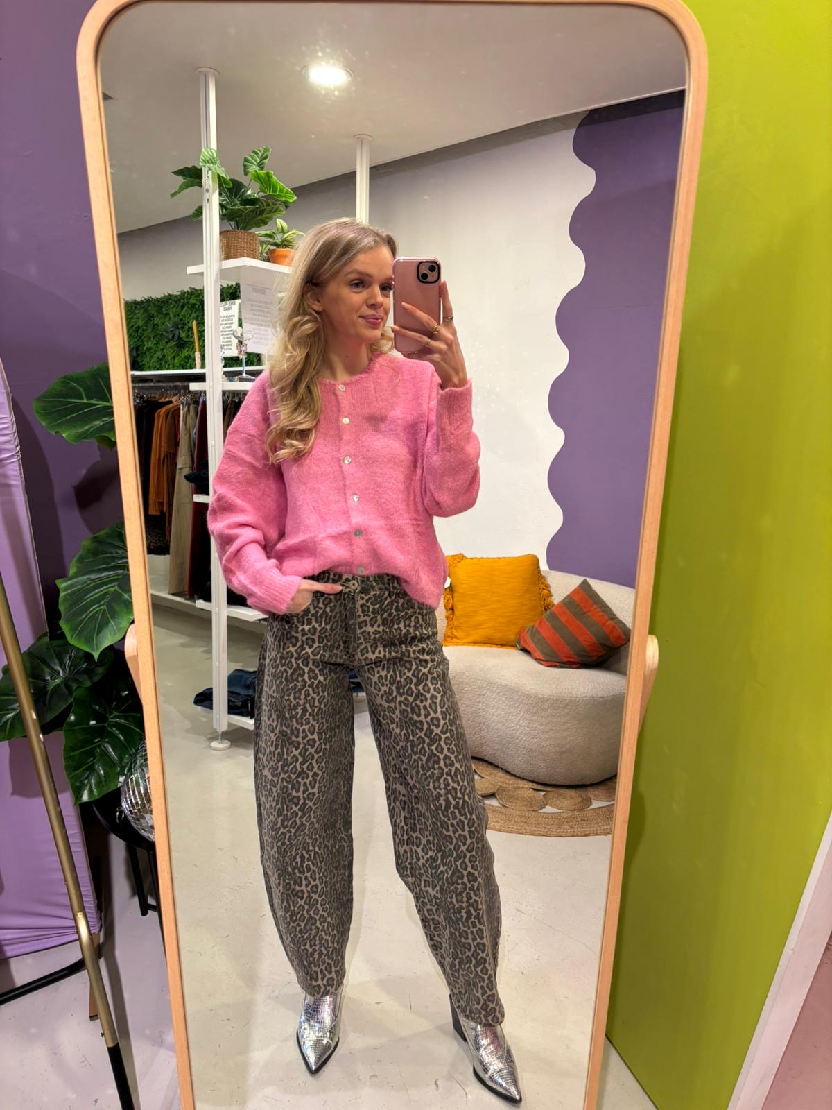 De denim heeft een trendy leopard print en zit heerlijk door de mix van katoen en lyocell: stevig, maar toch soepel en comfortabel. Een echte musthave voor iedereen die houdt van trendy en effortless looks.
