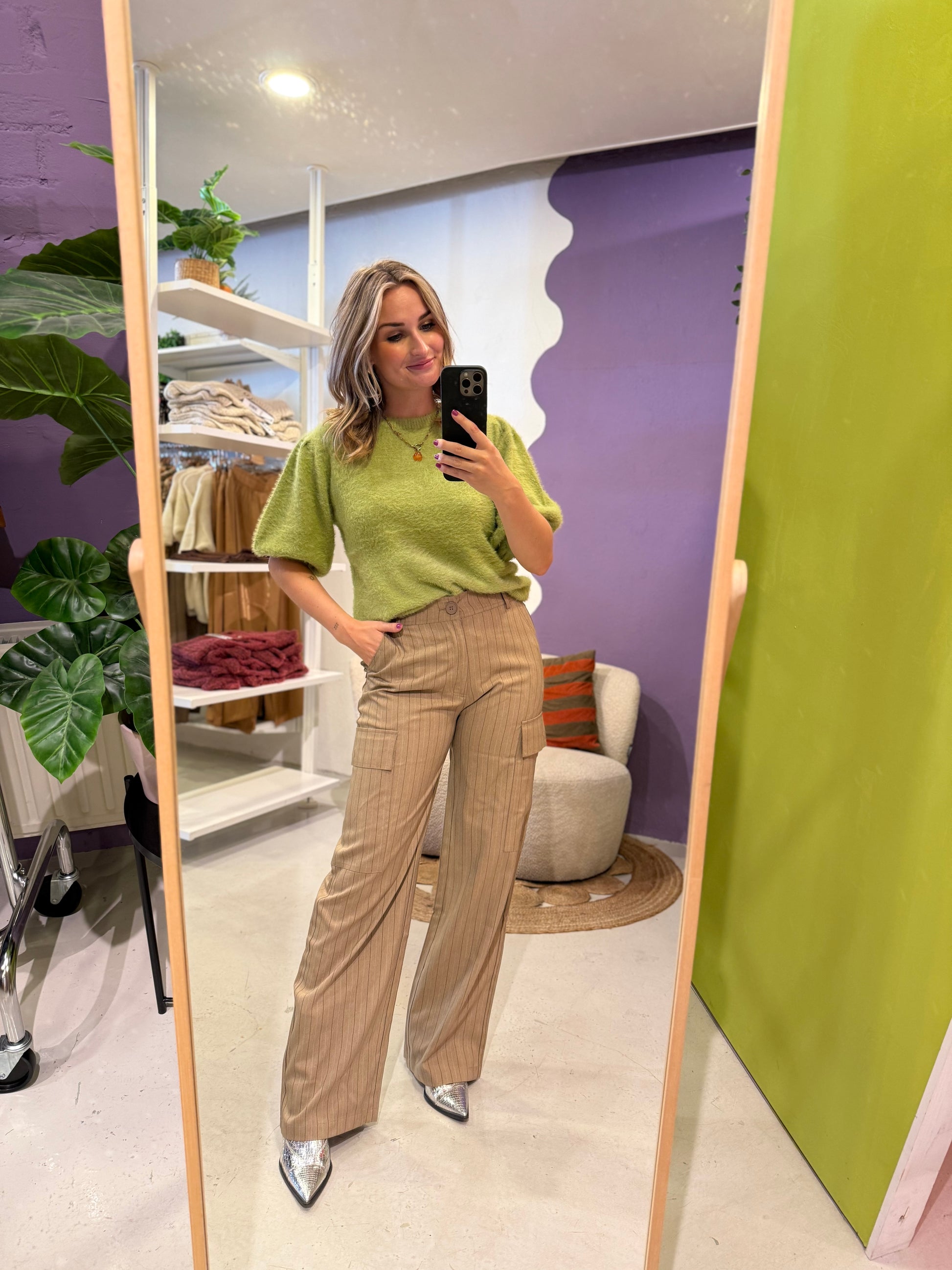 • Fraser pantalon: rechte pijp & elastische tailleband