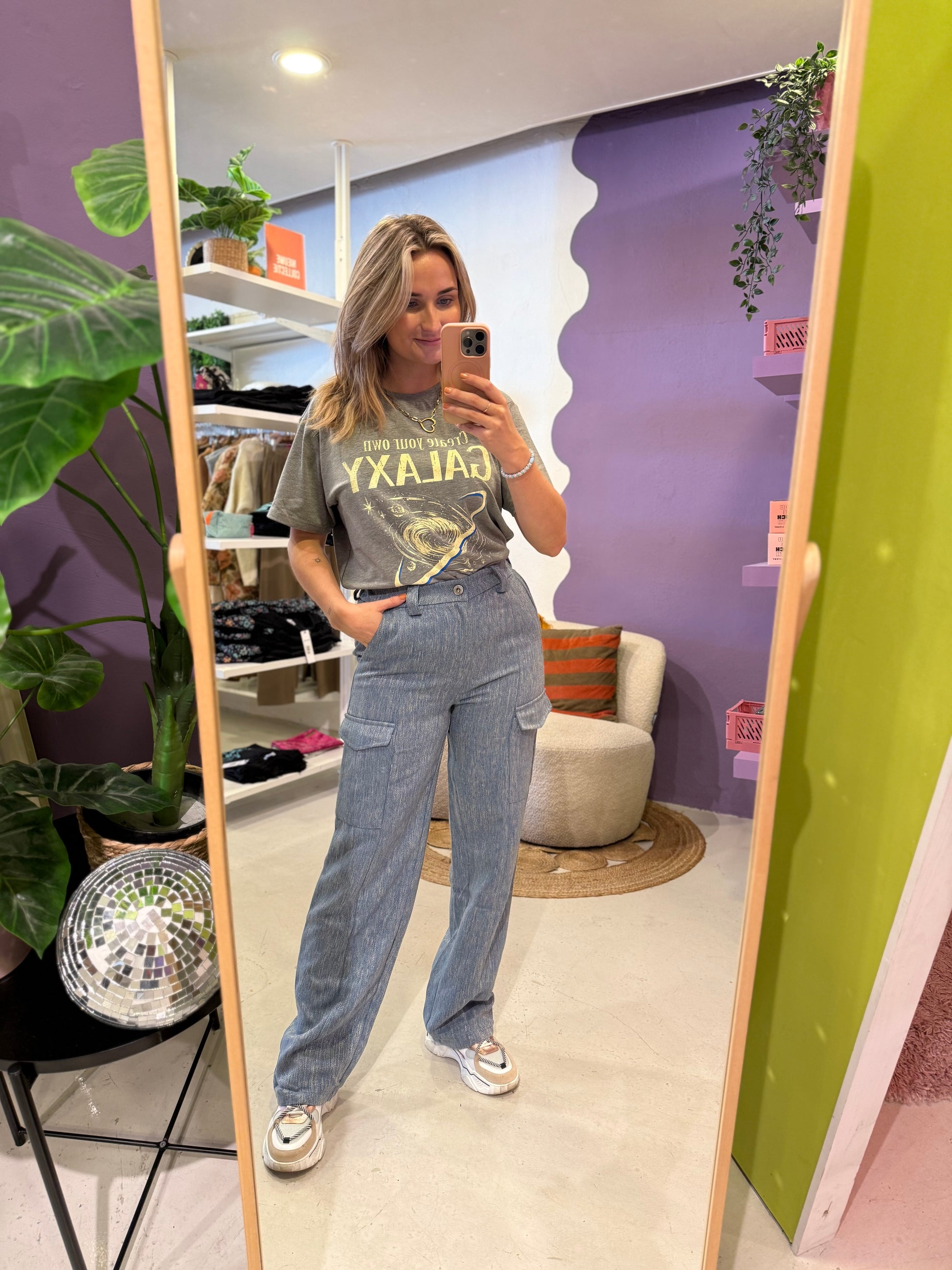 De Lieke pants combineert het stoere uiterlijk van een jeans met het comfort van een relaxte broek. De rechte pijpen en de cargozakken op de benen geven een eigentijdse, casual look, terwijl de elastische tailleband zorgt voor een comfortabele pasvorm. Uitgevoerd in een frisse blauwe tint, waardoor hij eindeloos te combineren is. Perfect voor een nonchalante, maar stijlvolle outfit.