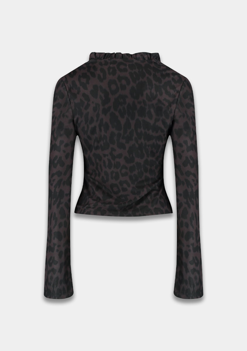 Deze tijgerprint blouse van Harper & Yve is een echte blikvanger. Uitgevoerd in een donkerbruine tint met een speelse all-over animal print, geeft deze blouse jouw outfit meteen een krachtige uitstraling. De overslag met subtiel ruffle randje zorgt voor een vrouwelijke en elegante touch, terwijl de comfortabele fit hem ideaal maakt om zowel casual als chic te dragen.