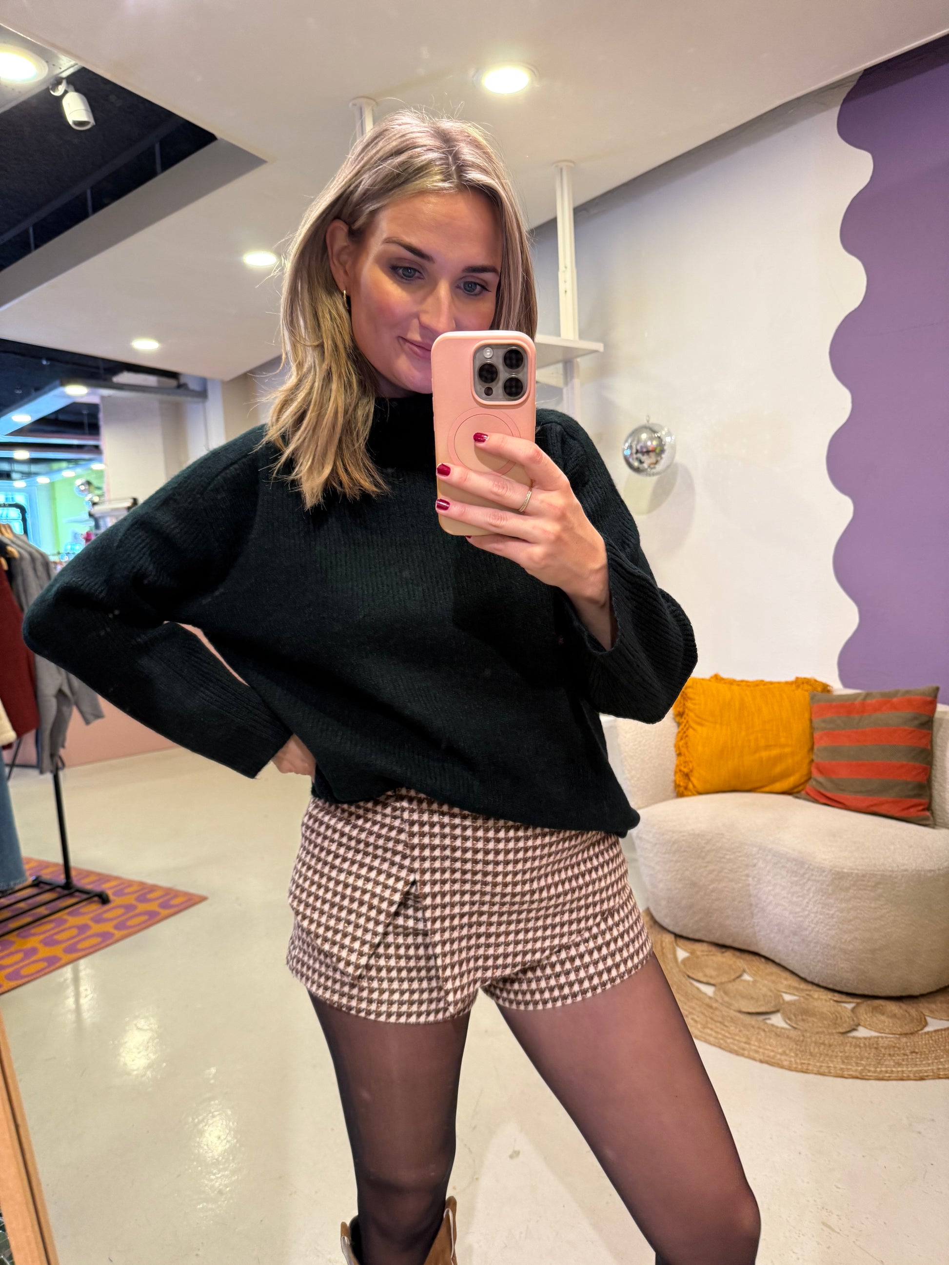 De colkraag zorgt voor een knusse look en extra warmte, ideaal voor frisse dagen. Combineer hem casual met een jeans en boots of draag hem chic over een rok – deze trui past overal bij!