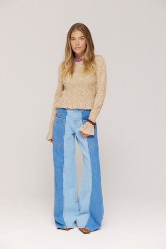 De Madelynn jeans van Harper & Yve is een echte eyecatcher voor je denimcollectie. Deze high-waist jeans heeft een unieke look dankzij het gebruik van twee verschillende kleuren denim. De wijde pijp geeft de jeans een trendy, relaxte uitstraling én zorgt voor een flatterende pasvorm. Perfect te combineren met een simpele top voor een casual look of met een blouse voor een stijlvolle twist.