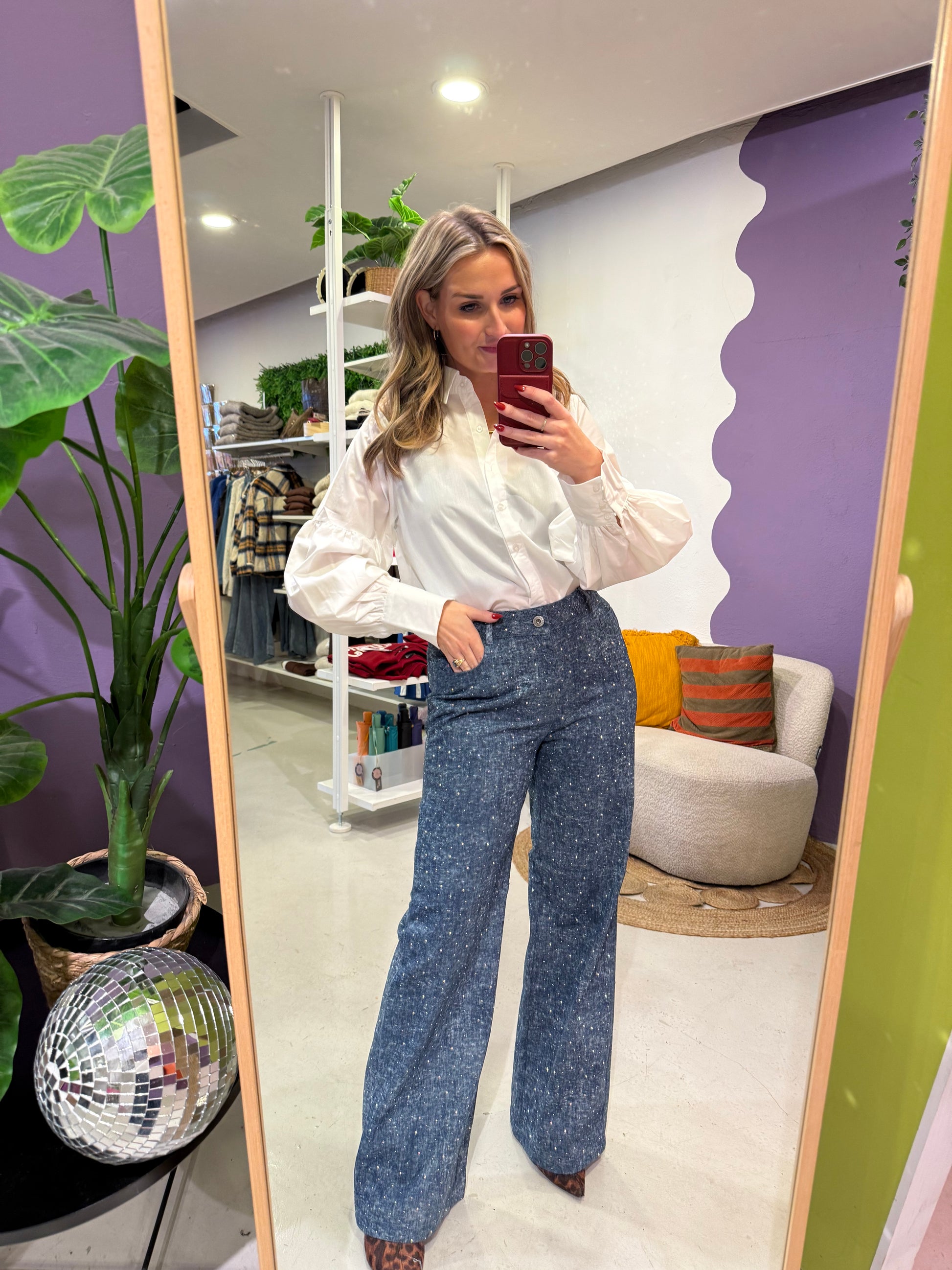 De RAIN PANTS is alles wat je nodig hebt voor een statement look met sparkle. Een rechte, flatterende broek met subtiele glitters die elke outfit laat stralen.
