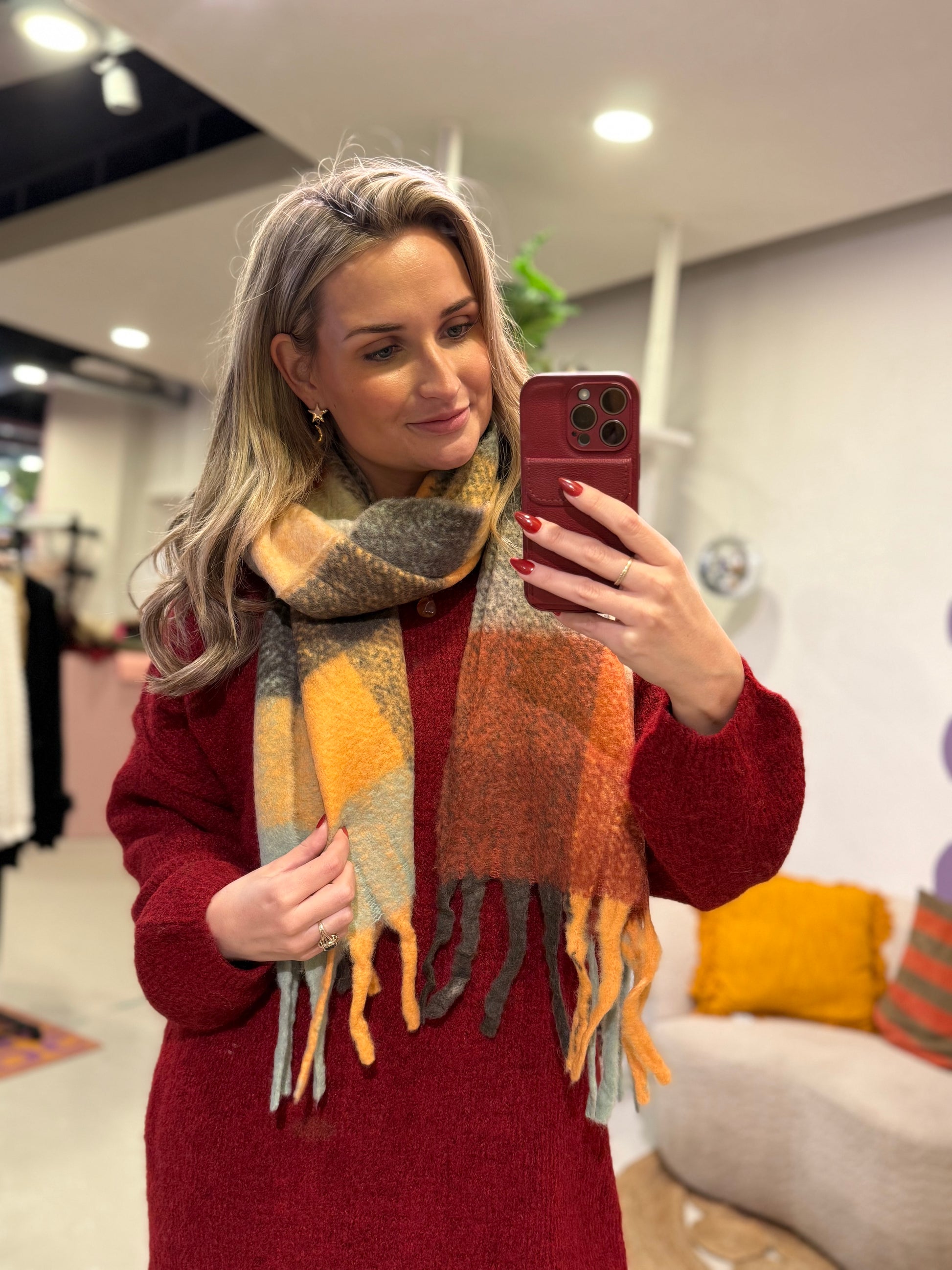Deze zachte, comfortabele sjaal is gemaakt om jou warm te houden tijdens de koude dagen. De stof voelt luxe aan op de huid en is groot genoeg om lekker om je heen te slaan – perfect voor een wandeling, een dagje shoppen of gewoon als cozy accessoire voor thuis.