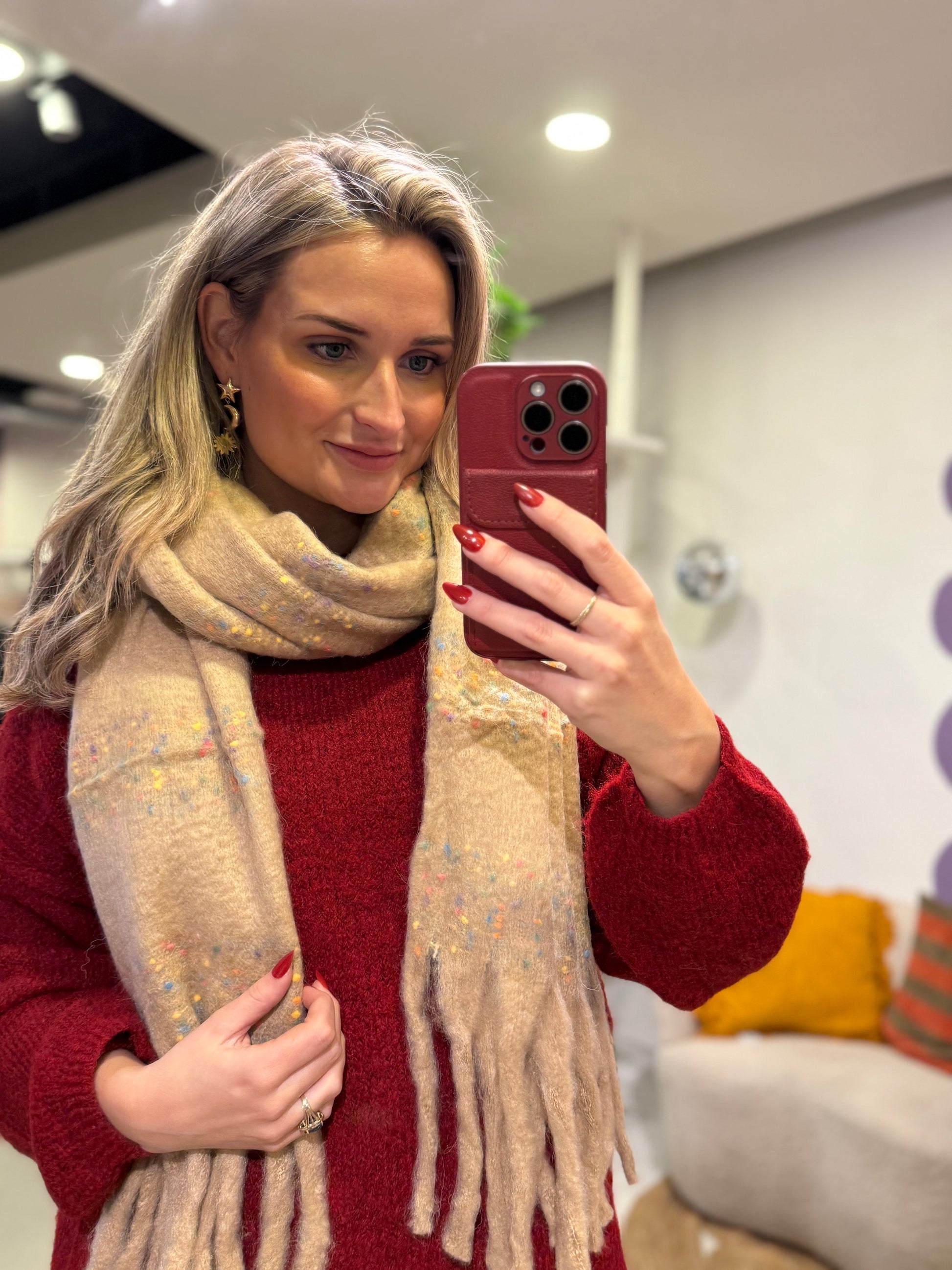 Deze zachte, comfortabele sjaal is gemaakt om jou warm te houden tijdens de koude dagen. De stof voelt luxe aan op de huid en is groot genoeg om lekker om je heen te slaan – perfect voor een wandeling, een dagje shoppen of gewoon als cozy accessoire voor thuis.