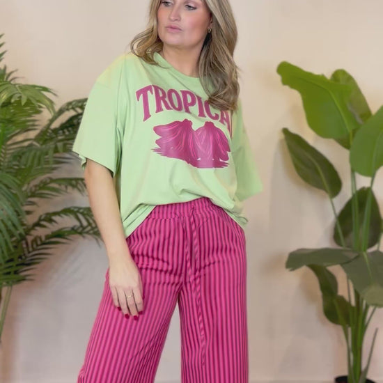 Draag de Tropical T-shirt casual op een jeans of short voor een ontspannen look, of combineer met een blazer of pantalon voor een meer geklede, moderne outfit. Een tijdloos en comfortabel item met een frisse uitstraling.