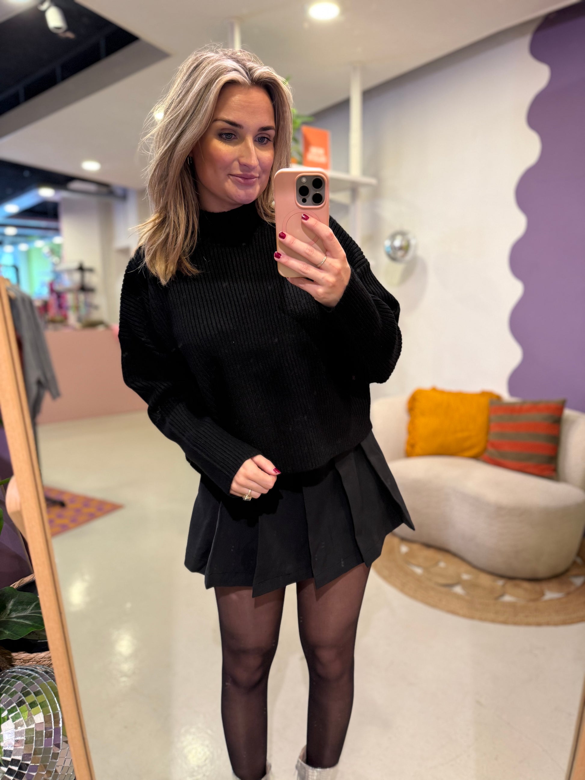 De colkraag zorgt voor een knusse look en extra warmte, ideaal voor frisse dagen. Combineer hem casual met een jeans en boots of draag hem chic over een rok – deze trui past overal bij!