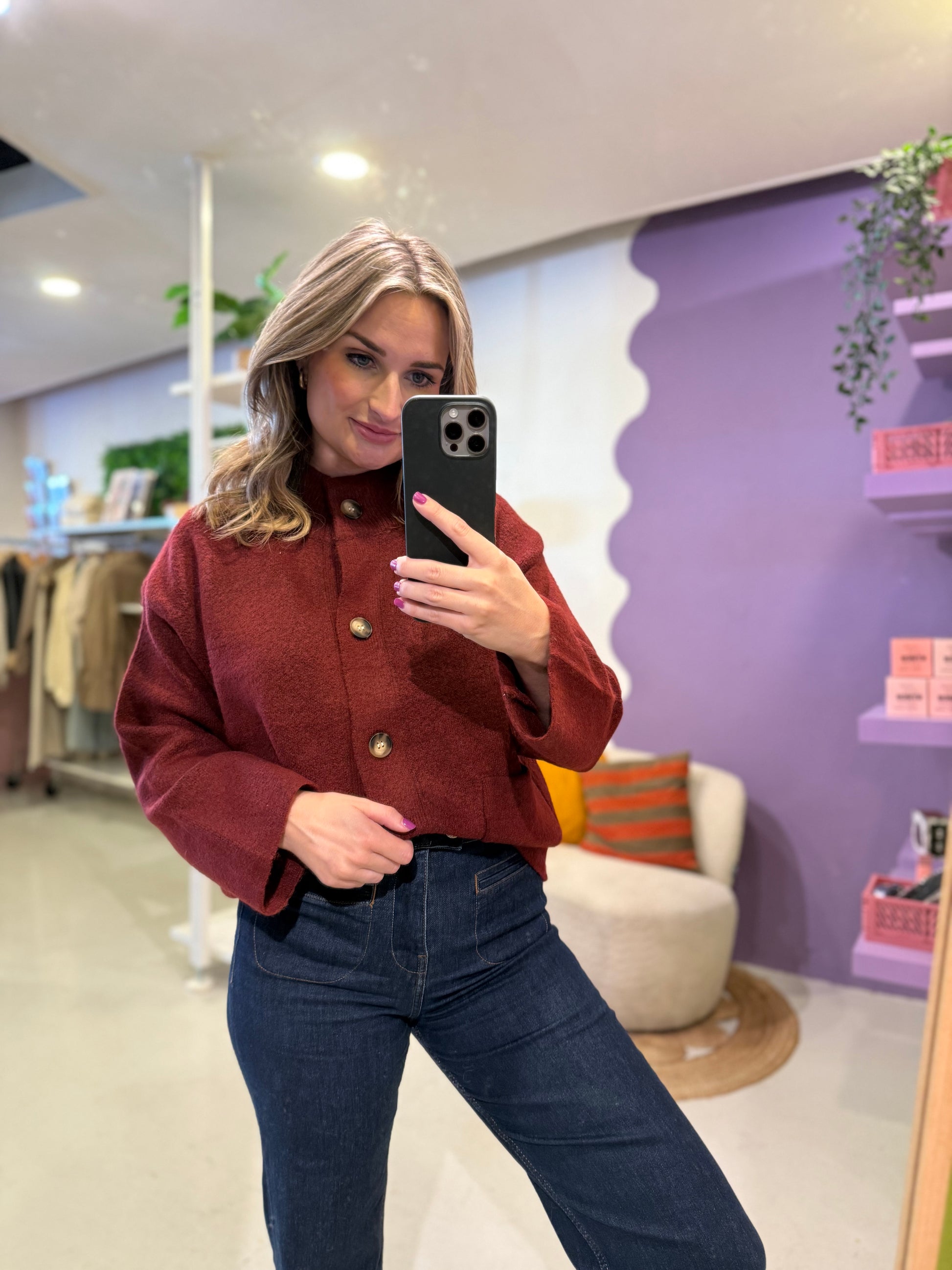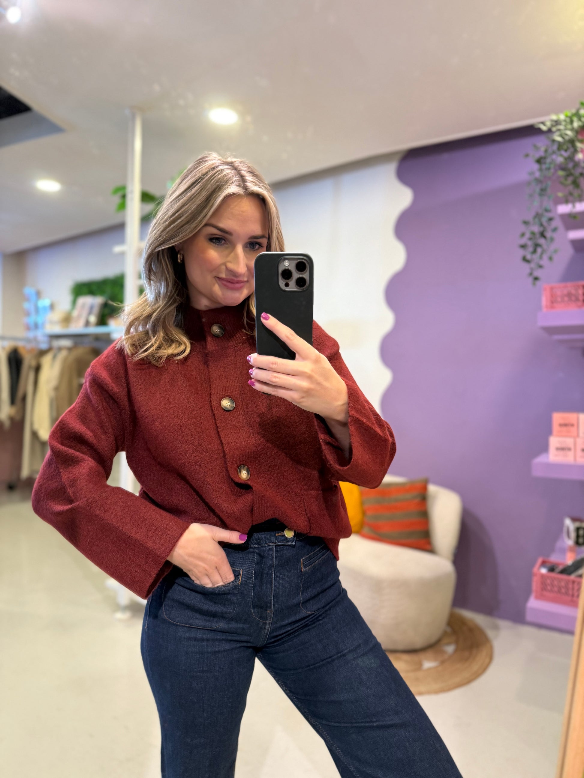 Dit wijnrode vest (burgundy) is een echte musthave voor je garderobe. Dankzij de hoge hals blijft je heerlijk warm, terwijl de praktische zakken zorgen voor comfort en gemak. Het tijdloze design maakt dit vest ideaal om zowel casual als chic te stylen – draag het open over een basic top of gesloten als cosy trui.