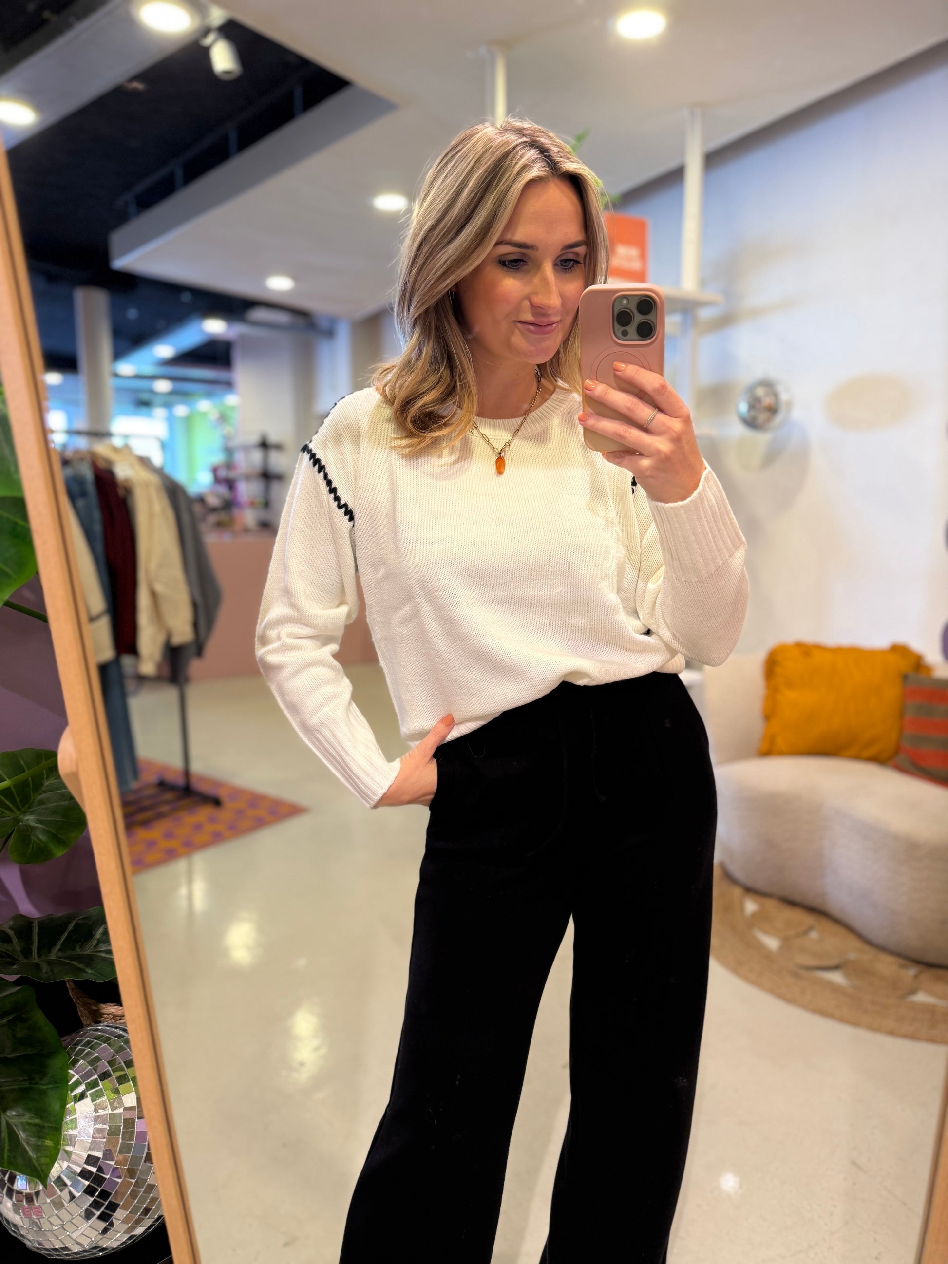 Witte trui met contrasterende details