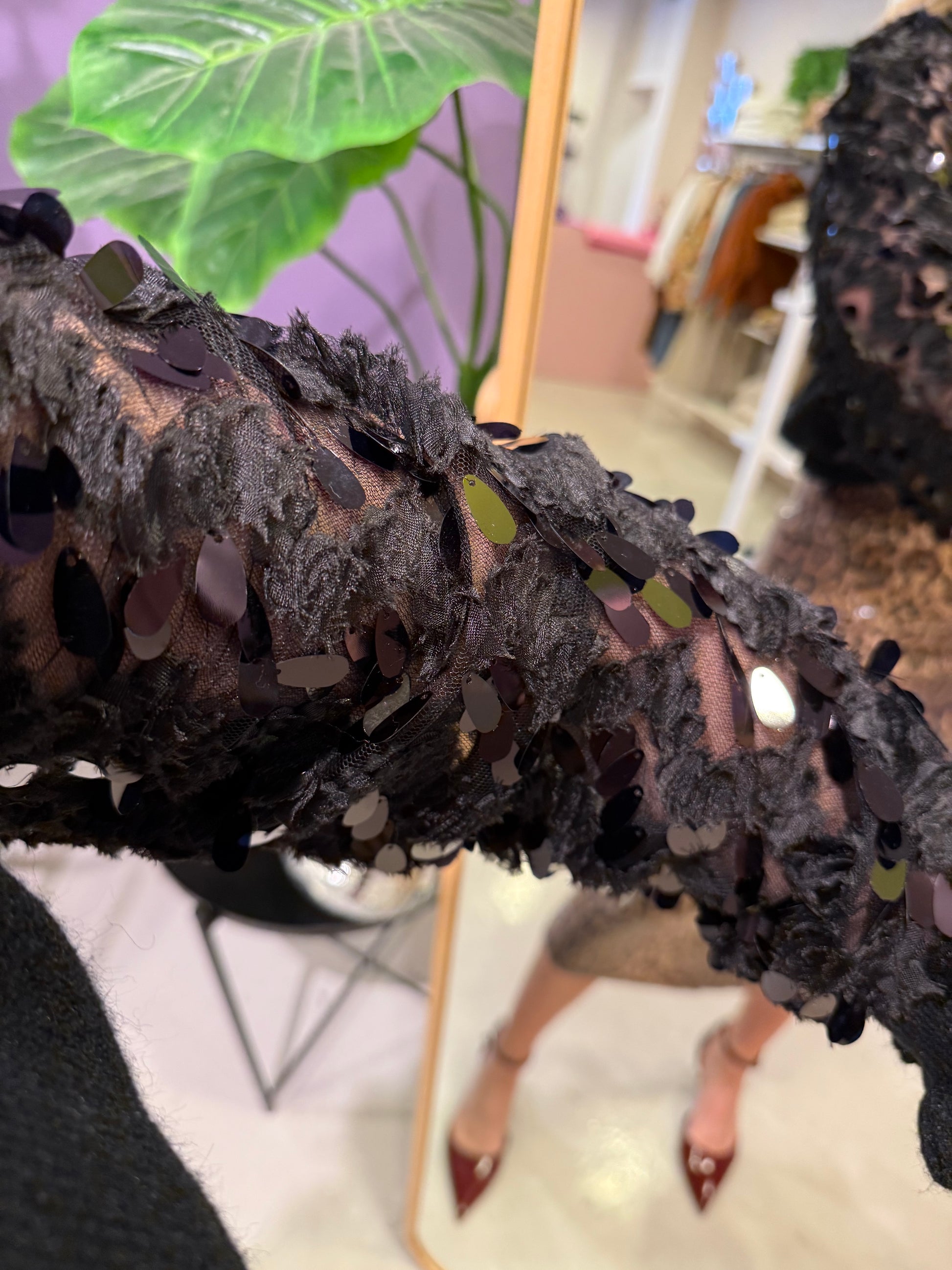 Zwarte trui met glitter blouse mouwen